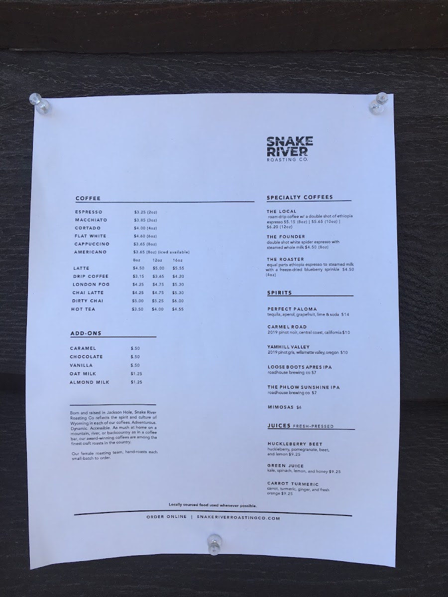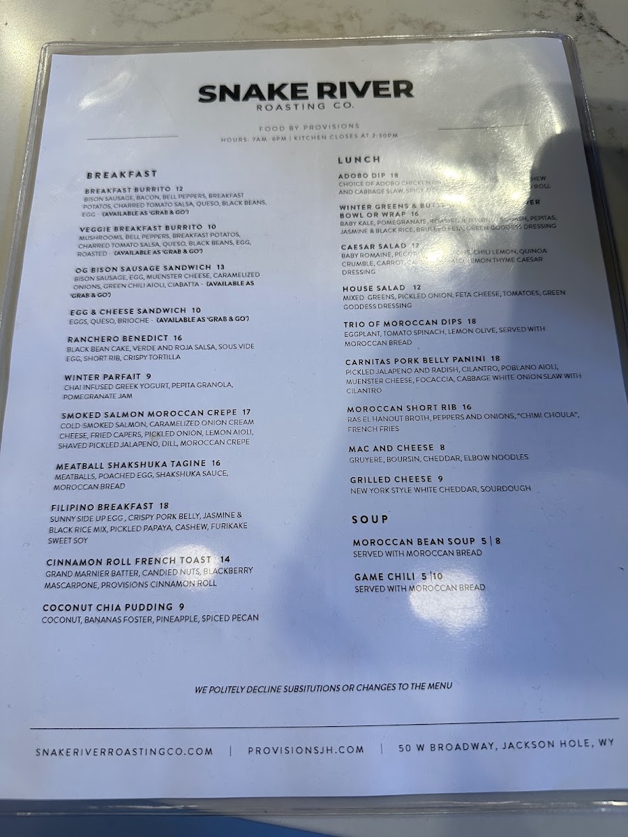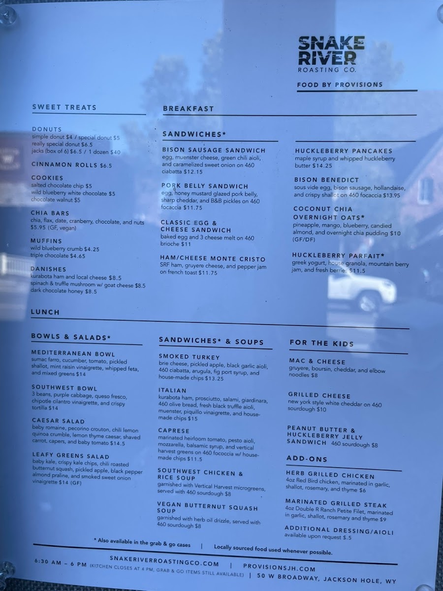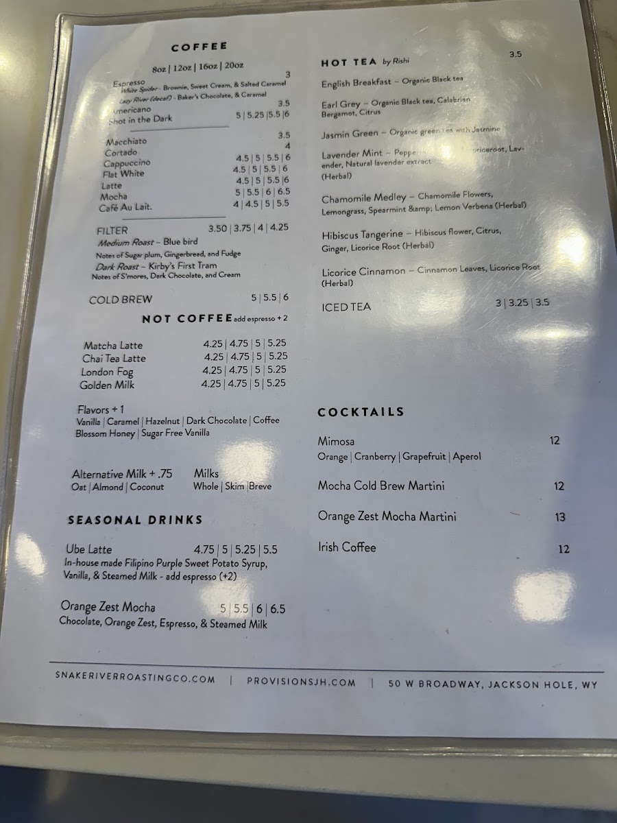 Welcome to Snake River Roasting Company, a charming café nestled in downtown Jackson, Wyoming. This cozy spot not only serves incredible coffee but also offers a menu brimming with delightful options for lunch and breakfast. Start your day with a rich Espresso or an eye-catching Latte, beautifully crafted with foam art that never fails to impress. The Fried Chicken Sandwich on a brioche bun comes highly recommended, balanced by the zing of Cajun aioli and crisp cabbage.